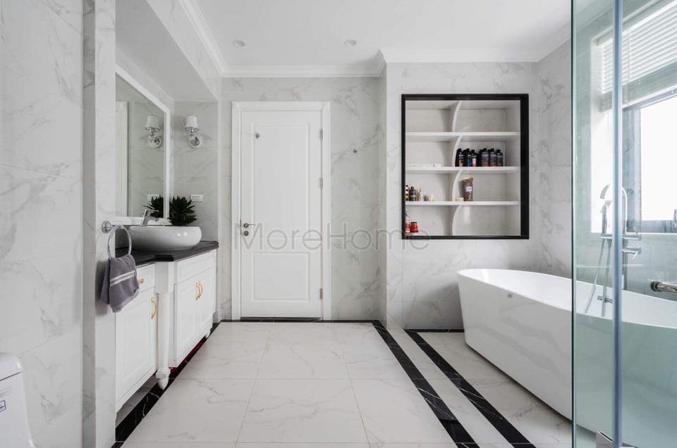 Hạng mục thi công: Bàn đảo bếp, ốp bếp, ốp tường, vách tivi, sàn nhà, khu nhà tắm, cầu thang..